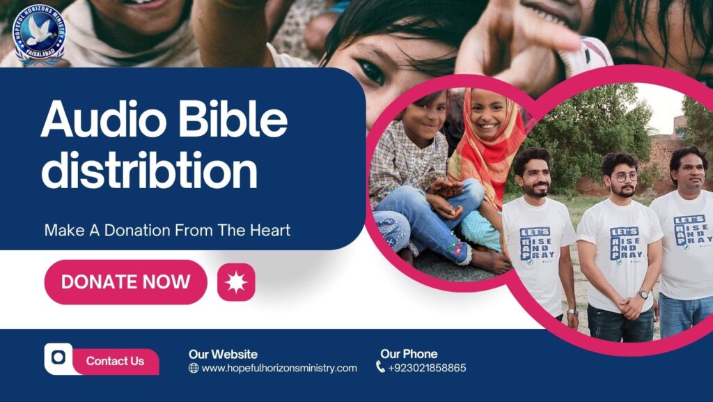 On August 18, 2023, from 10:00 AM to 3:00 PM, Hopeful Horizons Ministry organized a special event in Khushal Town, Malkhanwala to Distributes Audio Bibles to individuals who are unable to read or have limited access to printed Scriptures. This Audio Bible Distribution was a powerful and compassionate step toward making God’s Word accessible to everyone, regardless of age, education, or background.