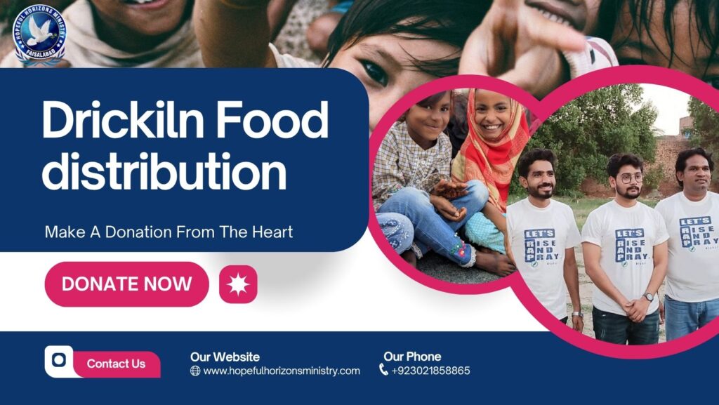 On July 10, 2023, from 10:00 AM to 3:00 PM, Hopeful Horizons Ministry organized a special Drickiln Food Distribution program at Khushal Town, Malkhanwala—the location where we frequently gather for prayer and outreach. This compassionate event was focused on helping families in need by distributing essential food items and showing the love of Christ through action.
